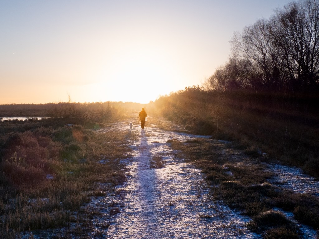I faced this yesterday. 66 photos and didn’t like a single one. Then, the last one. A random shot into the sun. As I was taking it I didn’t see the man and his dog as the sun was so bright. I even told him as much after we said good morning to each other. So, I was surprised to find him in my last photo.